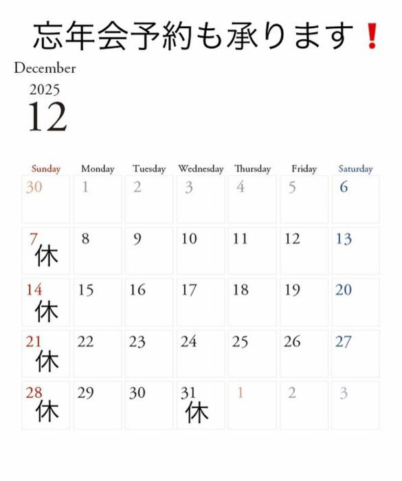 また、定休日などの情報はカレンダーでご確認していただき、ご予約をお願いします。
