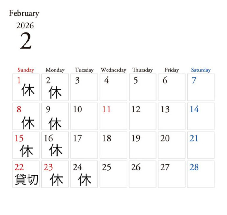営業日・お休みの予定は、カレンダーをご確認ください。